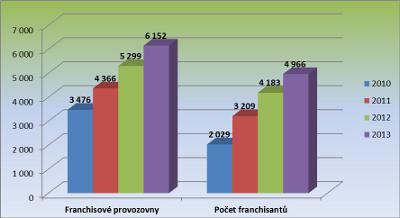 To, co v roce 2013 také rostlo, je počet franchisových jednotek. Ten se zvýšil o více jak 16 % a dosáhl počtu 6152. Jejich podíl na úkor vlastních přesáhl 50 %. Vyplývá to z Franchising REPORTu 2013, který vypracovala mezinárodní poradenská společnost PROFIT system.